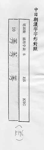 中日朝漢字字形對照