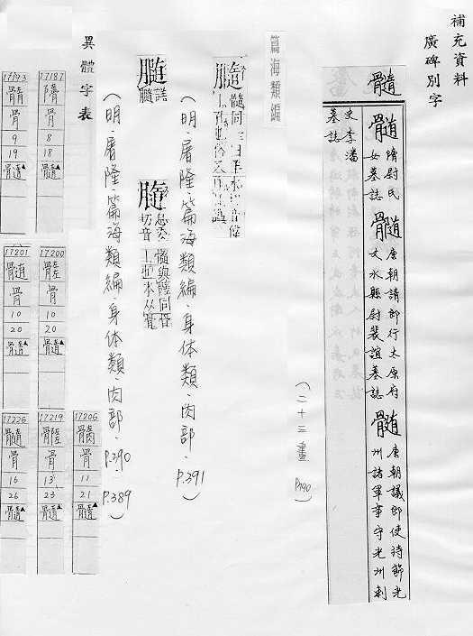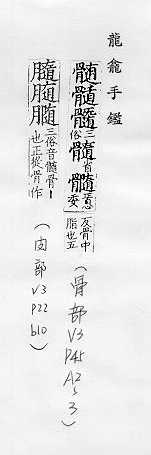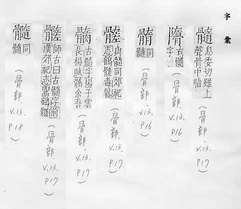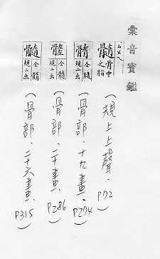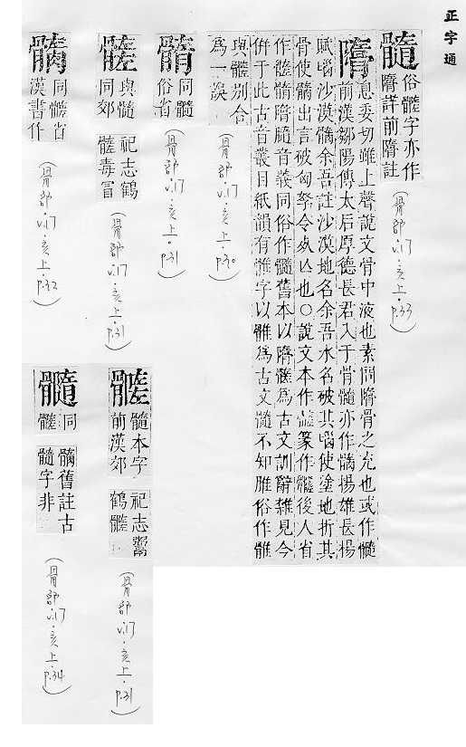 骨头的空腔中像胶状的东西:骨~。精~(喻精华)。 像骨髓的东西:脊~。脑~。延~(后脑的一部分)。 植物茎的中心部分,由薄壁的细胞组成。