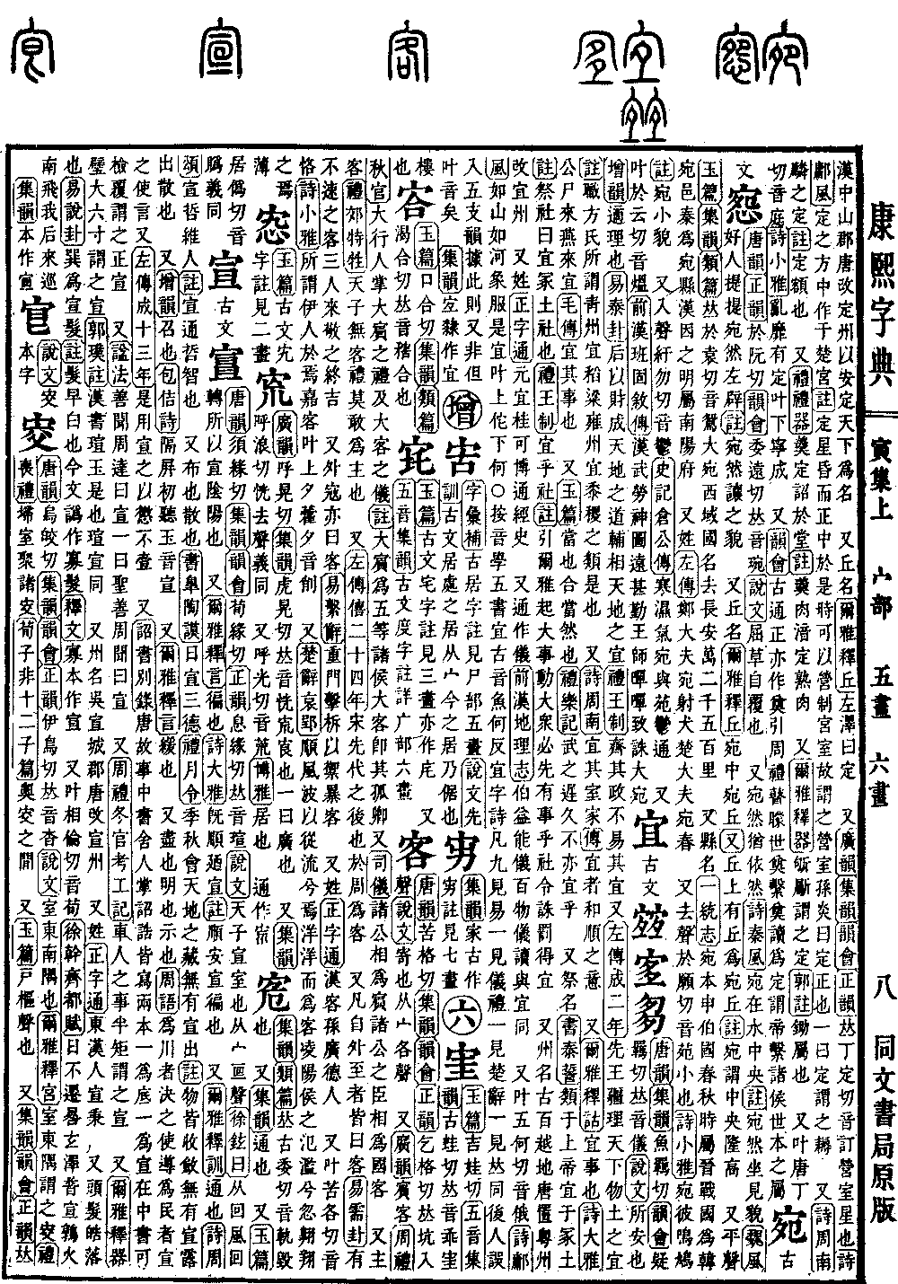 〔古文〕惌《唐韵》《正韵》于阮切《韵会》委远切,𠀤音琬。《说文》屈草自覆也。 又宛然犹,依然。《诗·秦风》宛在水中央。《注》宛然,坐见貌。《魏风》好人提提,宛然左辟。《注》宛然,让之貌。 又丘名。《尔雅·释丘》宛中,宛丘。《又》丘上有丘为宛丘。《注》宛谓中央隆高。 又平声。《玉篇》《集韵》《类篇》𠀤于袁切,音鸳。大宛,西域国名,去长安万二千五百里。 又县名。《一统志》宛,本申伯国,春秋时属晋,战国为韩宛邑,秦为宛县,汉因之,明属南阳府。 又姓。《左传》郑大夫宛射犬,楚大夫宛春。 又去声,于愿切,音苑。小也。《诗·小雅》宛彼鸣鸠。《注》宛,小貌。 又入声,纡勿切,音郁。《史记·仓公传》寒湿气宛。与苑郁通。 又叶于云切,音煴。《前汉·班固叙传》汉武劳神,图远甚勤。王师啴啴,致诛大宛。