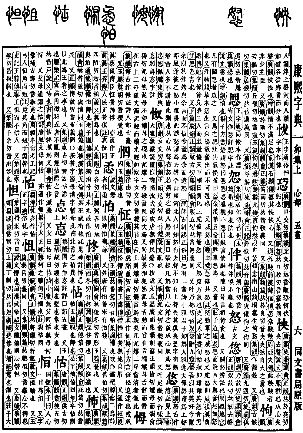 《广韵》《正韵》他协切《集韵》《韵会》托协切,𠀤音帖。《玉篇》服也,静也。《公羊传·僖四年》卒怗荆,以此为王者之事也。 又《集韵》处占切,音沾。怗滞也。《礼·乐记》宫商角征羽,五者不乱,则无怗滞之音。