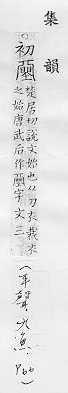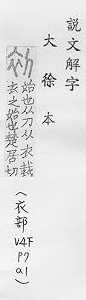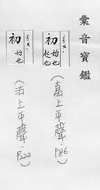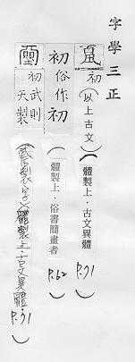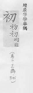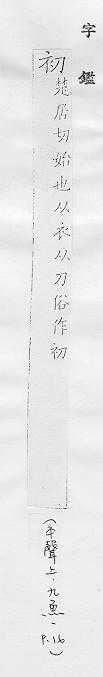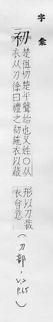 开始时,开始的部分:~始。正月~一。~旬。~稿。~等。~版。~试。~创。~绽。~叶(指某一历史时期的最初一段)。~夜(a.指进入夜晚不久的时候;b.指新婚第一夜)。 原来的,原来的情况:~衷。和好如~。 姓。