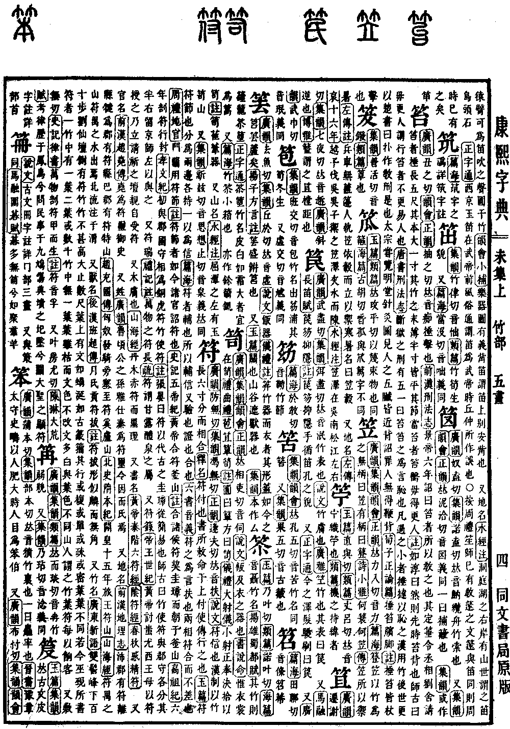 《广韵》《集韵》《韵会》《正韵》𠀤力入切,音力。《篇海》簦、笠,以竹为之。无柄曰笠,有柄曰簦。《诗·小雅》何蓑何笠。《传》笠所以御暑。《左传注》兵车无盖,笾人执笠依毂而立,以御寒暑,名曰笠毂。 又地名。《左传·哀十六年》越子伐吴,吴子御之笠泽,夹水而陈。《水经注》笠泽在吴南松江左右。