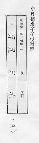中日朝漢字字形對照