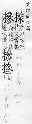 - 左:扌,右:喿。