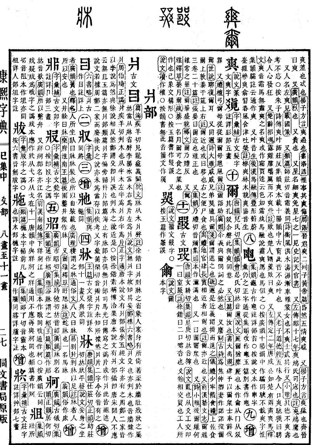 《唐韵》《集韵》仕庄切《正韵》助庄切,𠀤状平声。《说文》安身之坐者。《广韵》箦也。《释名》人所坐卧曰牀。牀,装也。所以自装载也。《广雅》栖谓之牀。《通俗文》八尺曰牀。《易·剥卦》剥牀以足。《注》牀者,人所以安也。 又井干曰牀。《乐府·淮南王篇》后园凿井银作牀。 又《尔雅·释草》盱虺牀。《注》蛇牀也。一名马牀。 《广韵》俗作床。