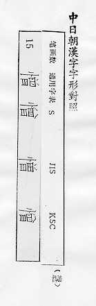 中日朝漢字字形對照