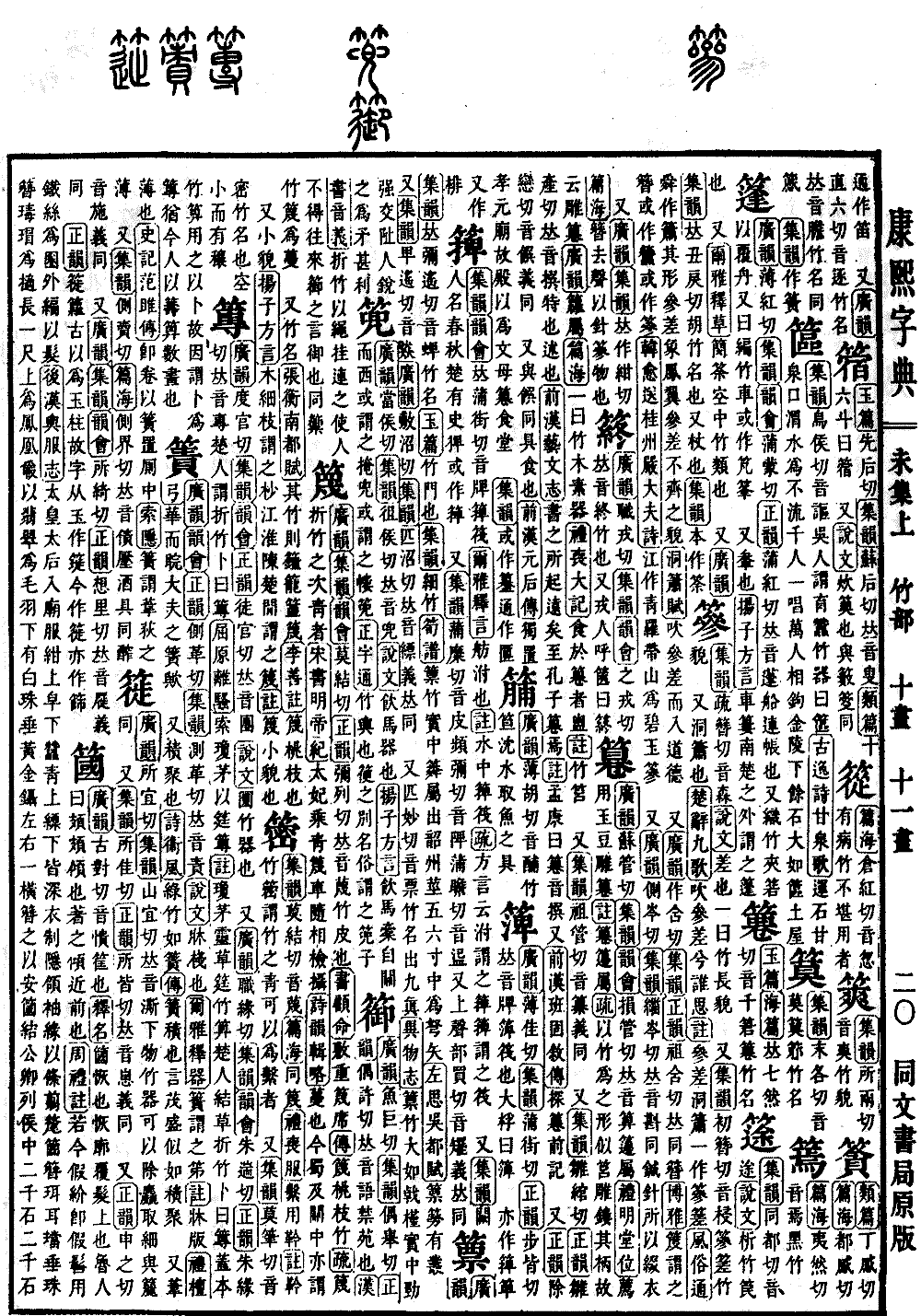 《广韵》《集韵》《韵会》莫结切《正韵》弥列切,𠀤音蔑。竹皮也。《书·顾命》敷重篾席。《传》篾,桃枝竹。《疏》篾,折竹之次靑者。《宋书·明帝纪》太妃乘靑篾车,随相检摄。《诗·韵辑略》蔓也。今蜀及关中亦谓竹篾为蔓。 又竹名。《张衡·南都赋》其竹则籦笼䈽篾。《李善注》篾,桃枝也。 又小貌。《扬子·方言》木细枝谓之杪,江淮陈楚闲谓之篾。《注》篾,小貌也。