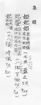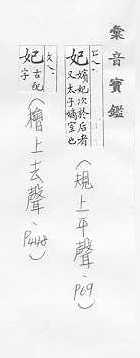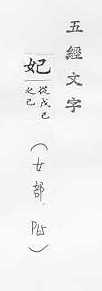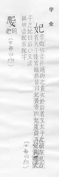 帝王的妻,位次于皇后;亦指太子、王、侯的妻:~子。~嫔。 古代对神女的尊称:天~。宓~。 古同绯,粉红色。