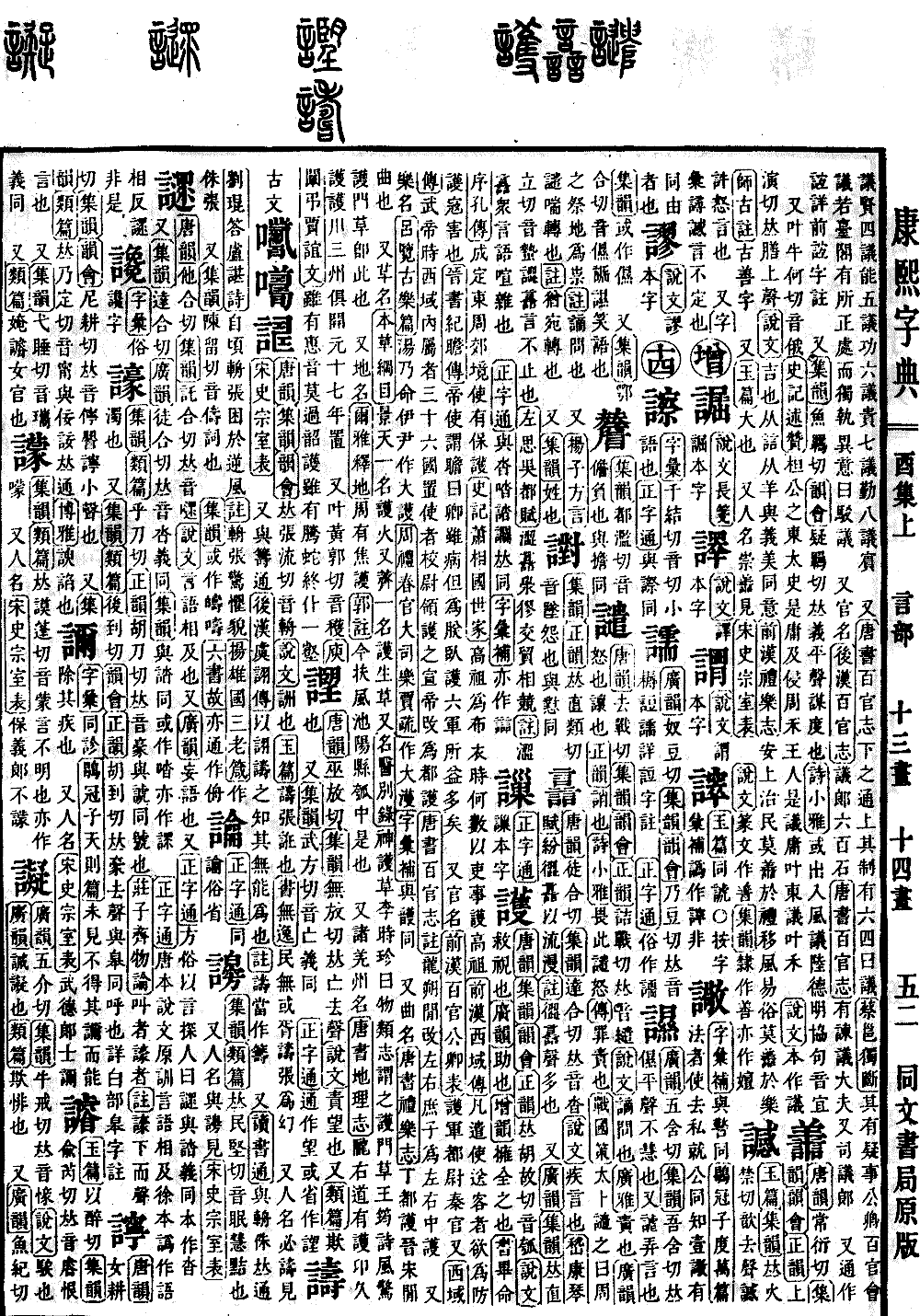 《唐韵》常衍切《集韵》《韵会》《正韵》上演切,𠀤膳上声。《说文》吉也。从誩从羊,与义美同意。《前汉·礼乐志》安上治民,莫譱于礼。移风易俗,莫譱于乐。《师古注》古善字。 又《玉篇》大也。 又人名。崇譱,见《宋史·宗室表》。 《说文》篆文作𦎍。《集韵》隶作善。亦作嬗。