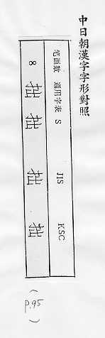 中日朝漢字字形對照