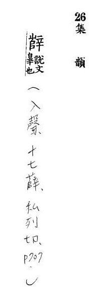 (一)ㄒㄩㄝ罪。說文解字:「,也。」廣韻.入聲.薛韻:「,凡從者,經典通作薛。」