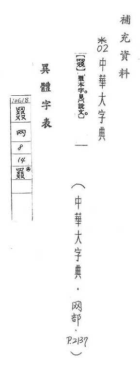 本页面所展现之内容,仅作为学术研究预览之用,更多异体字的专业资料请移步至《異體字字典》臺灣學術網路十一版(正式五版)