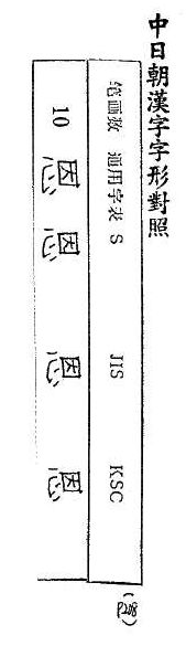 中日朝漢字字形對照