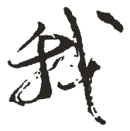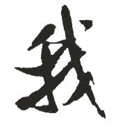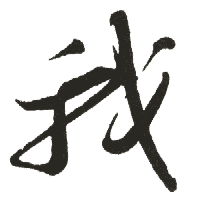 (会意。从戈,从戈。“我”表示兵器。甲骨文字形象兵器形。本义:兵器。基本义:第一人称代词)