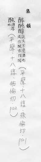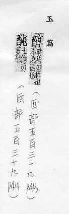 酒味厚:~酒。~醪。 纯粹:~和(性质或味道纯正平和)。~厚(气味、滋味纯正浓厚)。~美。~化。 同淳。 有机化合物的一类:乙~。胆固~。