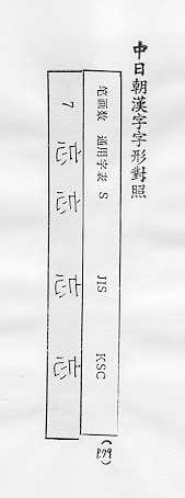 中日朝漢字字形對照