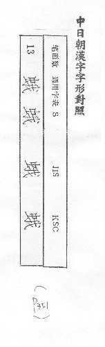 中日朝漢字字形對照