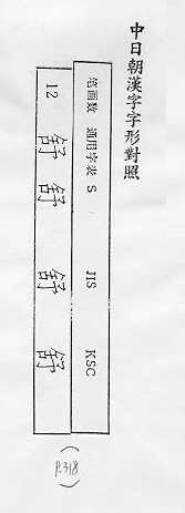 中日朝漢字字形對照