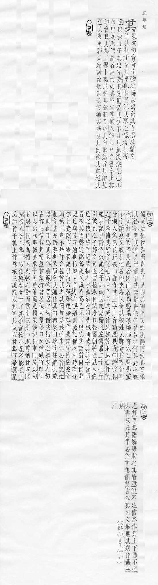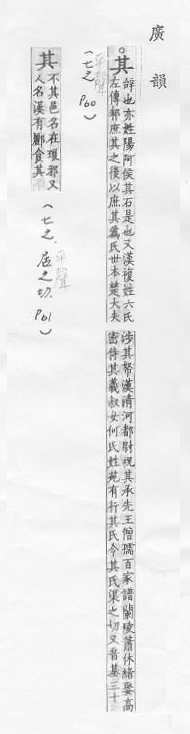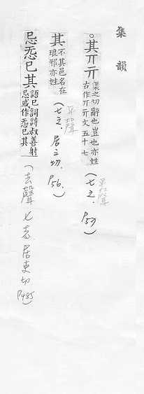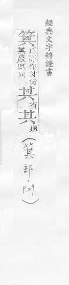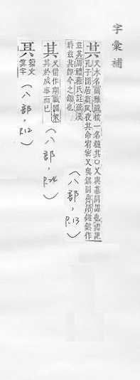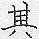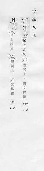 第三人物代词,相当于“他(她)”、“他们(她们)”、“它(它们)”;“他(她)的”、“他们(她们)的”、“它(们)的”:各得~所。莫名~妙。三缄~口。独行~是。自食~果。 指示代词,相当于那、“那个”、“那些”:~他。~余。~次。文如~人。名副~实。言过~实。 那里面的:~中。只知~一,不知~二。 连词,相当于“如果”、“假使”:“~如是,熟能御之?” 助词,表示揣测、反诘、命令、劝勉:“~如土石何?” 词尾,在副词后:极~快乐。大概~。