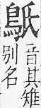雉。見玉篇.鳥部。雞。見廣韻.平聲.支韻。鴈。見廣韻.平聲.支韻。