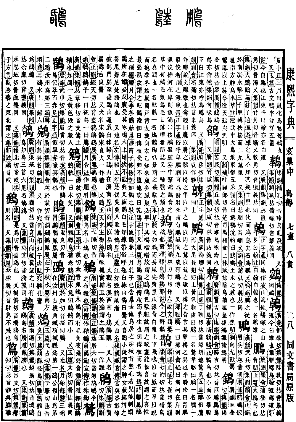 《广韵》都敎切《集韵》陟敎切,𠀤音罩。鵫雉,今白雉也。《尔雅·释鸟》雗雉,鵫雉。《郭注》今白鵫也。江东呼曰雗。亦名白雉。又《广韵》《集韵》𠀤直角切,音浊。又《集韵》竹角切,音斲。又敕角切,音逴。义𠀤同。