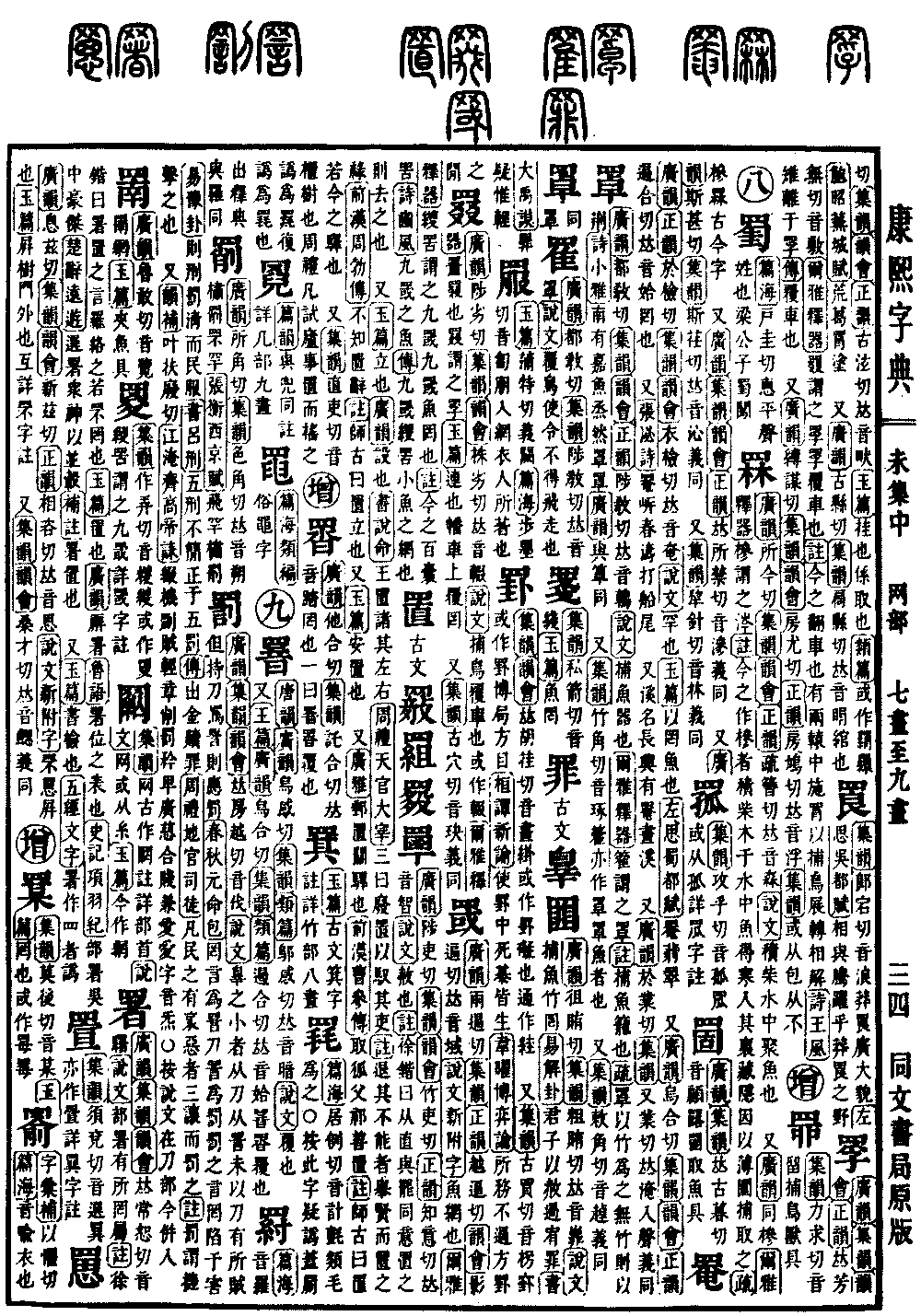 音辍。《说文》捕鸟覆车也。或作辍。《尔雅·释器》罿,罬也。罬谓之罦。《玉篇》连也。幡车上覆罔。 又《集韵》古穴切,音玦。义同。