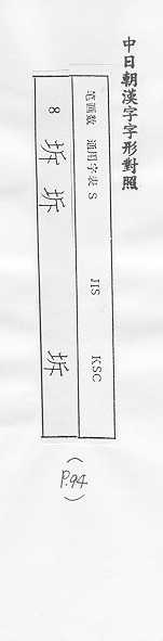 中日朝漢字字形對照