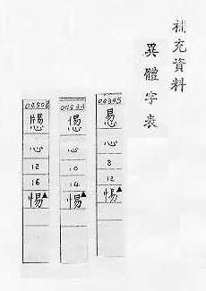 本页面所展现之内容,仅作为学术研究预览之用,更多异体字的专业资料请移步至《異體字字典》臺灣學術網路十一版(正式五版)