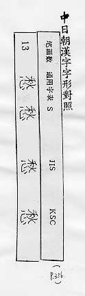中日朝漢字字形對照