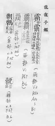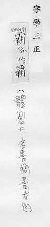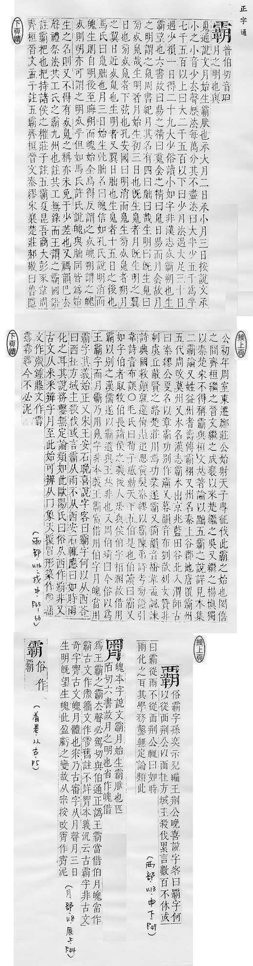 指依杖权势或武力欺压他人的人或集团:~王。称~。恶~。 奉行强力政策,或实行强力占有:~占。~权。~道。~略。 古代称诸侯的盟主:~主(a.中国春秋时势力最大并取得首领地位的诸侯;b.在某一领域或地区称霸的人或集团)。~业。春秋五~。