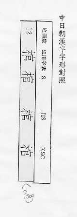 中日朝漢字字形對照