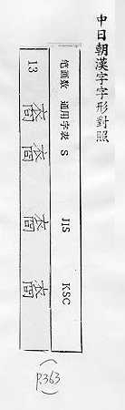 中日朝漢字字形對照