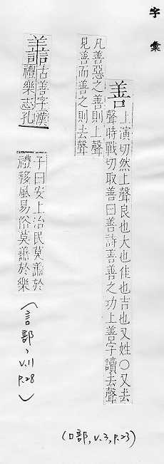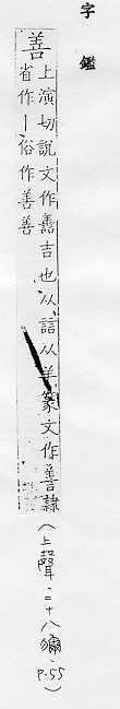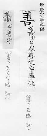 心地仁爱,品质淳厚:~良。~心。~举。~事。~人。~男信女。慈~。 好的行为、品质:行~。惩恶扬~。 高明的,良好的:~策。~本。 友好,和好:友~。亲~。和~。 熟悉:面~。 办好,弄好:~后。 擅长,长(cháng )于:~辞令。多谋~断。 赞许:“群臣百姓之所~,则君~之”。 好好地:~待。~罢甘休。 容易,易于:~变。~忘。多愁~感。 姓。