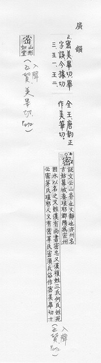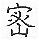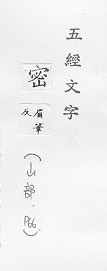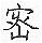 稠,空隙小,与稀、疏相对:紧~。稠~。茂~。严~。~封。~布。~集。~匝匝。~锣紧鼓(喻正式活动前的积极而紧张的准备,亦作“紧锣密鼓”)。 关系近,感情好:~友。~亲。 不公开,不公开的事物:秘~。保~。~谋。~电。~报。~使。~信。~诏。~旨。~探。 精致,细致:精~。细~。致~。~实(细密结实)。 姓。