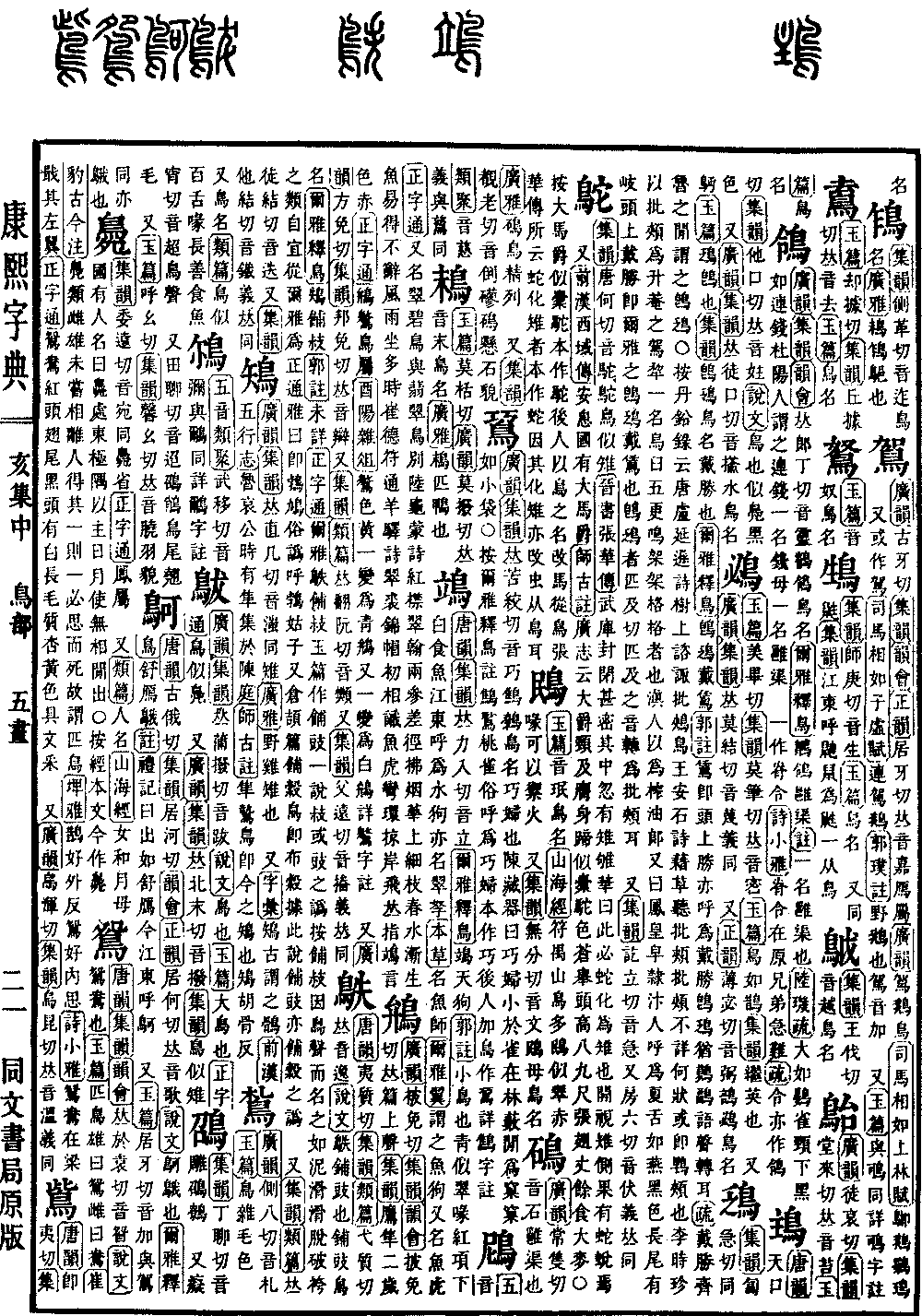《广韵》古牙切《集韵》《韵会》《正韵》居牙切,𠀤音嘉。鴈属。《广韵》鴐,鹅鸟。《司马相如·上林赋》𪀁鹅鸀鳿。又或作驾。《司马相如·子虚赋》连驾鹅。《郭璞注》野鹅也。驾音加。又《玉篇》与𪀉同。详𪀉字注。