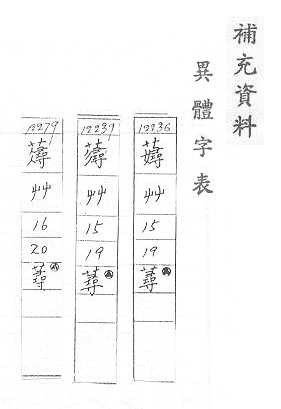 - 艹,部外笔画:12,总笔画:15