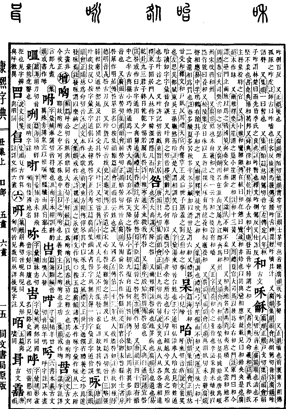 《唐韵》其九切《集韵》《韵会》《正韵》巨九切,𠀤音舅。《说文》灾也。从人从各。各者,相违也。《书·大禹谟》天降之咎。 又《尔雅·释诂》咎,病也。《疏》罪病也。《广韵》愆也,过也。《易·乾卦》九三,君子终日乾乾,夕惕若厉,无咎。《诗·小雅》宁适不来,微我有咎。 又《书序》殷始咎周。《传》咎,恶也。 又与臼通。《晋语》宜咎。《注》咎。或作臼,古字通用。 又与舅通。《仪礼·士昏礼注》古文舅作咎。《荀子·臣道篇》晋之咎犯。《左传》作舅。 又《唐韵正》四十四有韵中之半,古与篠,小,巧,皓通为一韵。书大禹谟,民弃不保,天降之咎。易小畜,初九复自道,何其咎。经传子集如此用者甚多,非叶音也。 又《广韵》古劳切《集韵》《韵会》居劳切《正韵》姑劳切,𠀤音高。《广韵》臯陶,舜臣名,古作咎繇。《前汉·百官公卿表》咎繇作士。《书序》咎单作明居。《传》咎单,臣名。○按《集韵》《类篇》《韵会》《正韵》俱云姓也,误。 又国名。《左传·僖二十三年》狄人伐廧咎如。《注》赤狄别种。《陆德明·音义》咎,古刀反。 又叶曁几切,音技。《史记·龟䇲传》王若遣之,宋必有咎。后虽悔之,亦无及已。 又叶跽许切,音巨。《三略》强弱相虏,莫适禁御,延及君臣,国受其咎。 又叶巨又切,音旧。《诗·小雅》谋夫孔多,是不用集。发言盈庭,谁敢执其咎。集叶疾救反。◎按《字汇》《正字通》俱以去声为咎字正音。考《玉篇》《广韵》《集韵》诸书,咎字𠀤无去声一音。《字汇》《正字通》皆误。