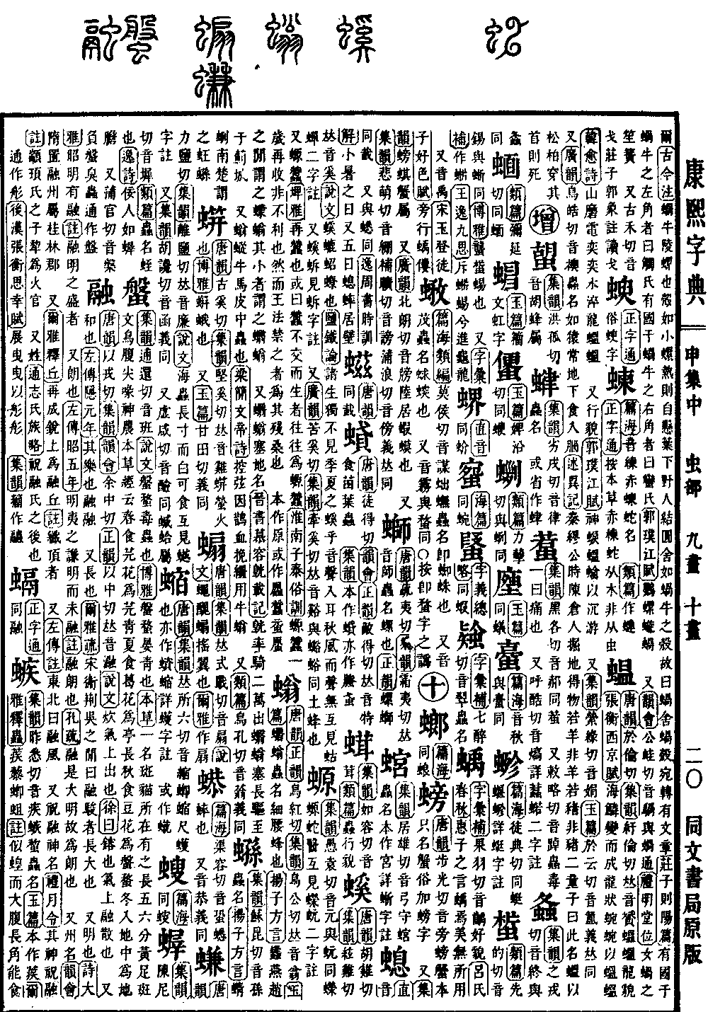 《唐韵》以戎切《集韵》《韵会》余中切《正韵》以中切,𠀤音瀜。《说文》炊气上出也。《徐曰》镕也,气上融散也。 又和也。《左传·隐元年》其乐也融融。 又长也。《尔雅疏》宋衞荆吴之闲曰融骏者,长大也。 又明也。《诗·大雅》昭明有融。《注》融,明之盛者。 又朗也。《左传·昭五年》明夷之谦,明而未融。《注》融,朗也。《孔疏》融是大明,故为朗也。 又州名。《韵会》隋置融州,属桂林郡。 又《尔雅·释丘》再成锐上为融丘。《注》纤顶者。 又《左传注》东北曰融风。 又祝融,神名。《礼·月令》其神祝融。《注》颛顼氏之子犂,为火官。 又姓。《通志·氏族略》祝融氏之后也。 通作䑣。《后汉·张衡·思幸赋》展曳曳以䑣䑣。 《集韵》籀作𧖓。