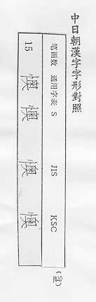 中日朝漢字字形對照