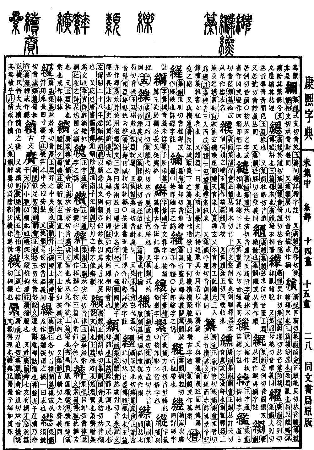 《广韵》力追切《集韵》《韵会》伦追切,𠀤音欙。《说文》缀得理也。《礼·乐记》累累乎端如贯珠。 又《说文》一曰大索也。《小尔雅》累繘也。《前汉·李广传》以劒斫绝累。《注》累,索也。 又《玉篇》系也。《广韵》系也。亦作缧。《左传·僖三十三年》不以累臣衅鼓。《注》累,囚系也。《前汉·司马迁传》幽于累绁。《注》累,系也。 又《诗·周南》葛藟累之。《释文》累,缠绕也。 又《诗·小雅》甘瓠累之。《注》累,蔓也。 又《礼·玉藻》丧容累累。《注》羸惫貌。 又《齐语》诸侯甲不解累。《注》累,所以盛甲也。 又《史记·孔子世家》累累若丧家之狗。《注》累累然,不得志之貌也。 又《前汉·郊祀志》秦巫𧙈社主巫保,族累之属。《注》族累,二神名。 又《前汉·扬雄传》钦吊楚之湘累。《注》李奇曰:不以罪死曰累。 又姓。《广韵》晋七舆大夫累虎。 又《集韵》《正韵》𠀤鲁猥切,音垒。㟪垒,山名。或作累。 又《集韵》力伪切,音嫘。同累事相缘及也。*考证:〔《小尔雅》绠繘也。〕 谨照原文绠改累。