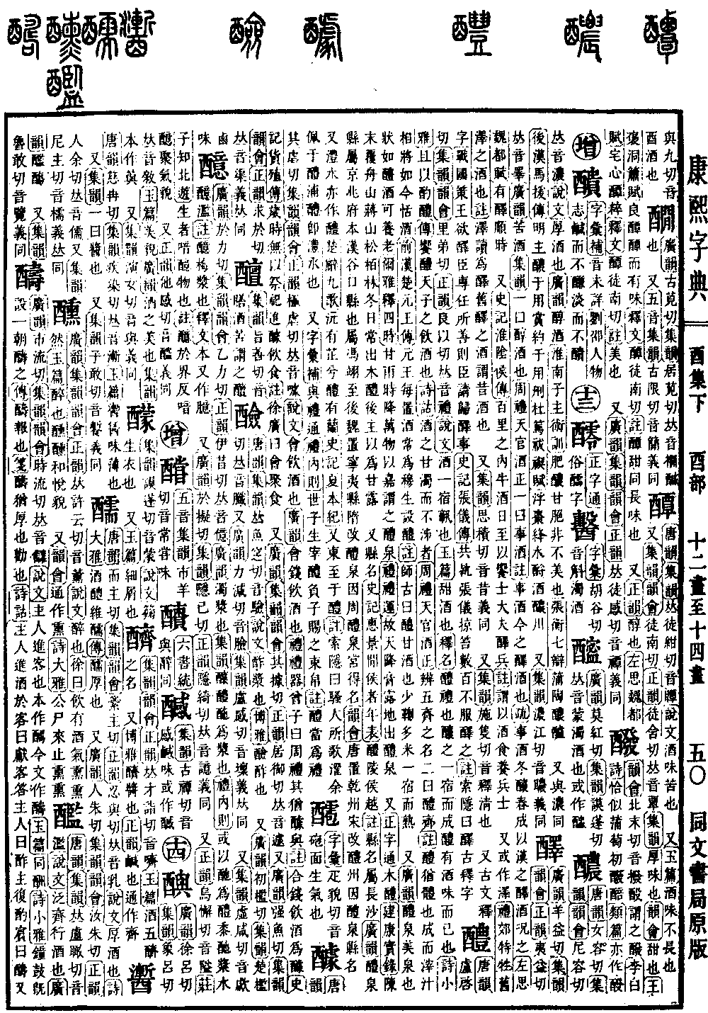 《广韵》市流切《集韵》《韵会》时流切,𠀤音仇。《说文》主人进客也。本作𨢫,今文作醻。《玉篇》同酬。《诗·小雅》钟鼓既设,一朝醻之。《传》醻,报也。《笺》醻,犹厚也,劝也。《诗诂》主人进酒于客曰献,客答主人曰酢,主复酌賔曰醻。又《小雅》君子有酒,酌言醻之。《传》醻,道飮也。《笺》主人既卒酢爵,又酌自飮,卒爵,复酌进賔,犹今俗之劝酒。《疏》欲以醻賔,而先自飮以导之,此举醻之初,其实飮讫进酒于賔,乃谓之醻。 又《广韵》周也。 又《集韵》承呪切,音授。报也。 又大到切,音导。美酒名。 又《韵补》叶常如切,音殊。《柳宗元·饶娥𥓓辞》懿兹德女,家世不儒。奇行特出,神道莫醻。