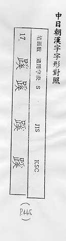 中日朝漢字字形對照