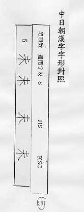 中日朝漢字字形對照