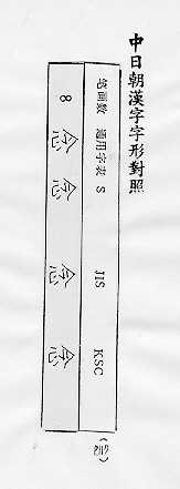 中日朝漢字字形對照