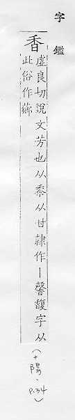 气味好闻,与臭相对:~味。~醇。芳~。清~。 舒服:睡得~。 味道好:这鱼做得真~。 受欢迎:这种货物在农村~得很。 称一些天然或人造的有香味的东西:麝~。灵猫~。龙涎~。檀~。沉~。 旧时用以形容女子事物或作女子的代称:~闺。~艳。 祭祖、敬神所烧的用木屑搀上香料做成的细条:~火。烧~拜佛。~炉。~烛。 姓。