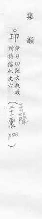 图章,戳记:~章。~玺。~记。~把子(亦喻政权)。 痕迹:手~。指~。~子(a.痕迹;b.高利贷的一种,全称“~~钱”)。 用油墨、染料之类把文字或图画留在纸、布、器皿等材料上:~刷。排~。~制。~发(fā)。 彼此符合:~证。心心相~。 外界事物反映在脑中所留下的形象:~象。 姓。
