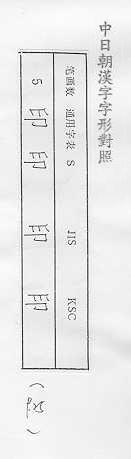 中日朝漢字字形對照