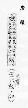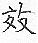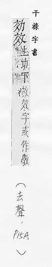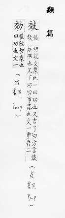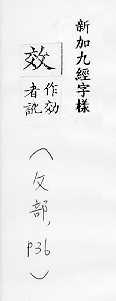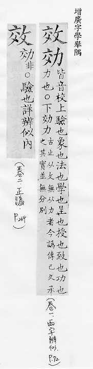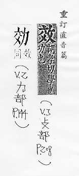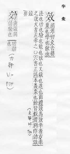摹仿:~法。仿~。上行下~。~尤(明知别人的行为是错的而照样去做)。 功用,成果:~验。~果。成~。有~。功~。~益。~用。~应。~率。 尽、致:~力。