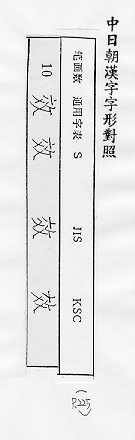 中日朝漢字字形對照