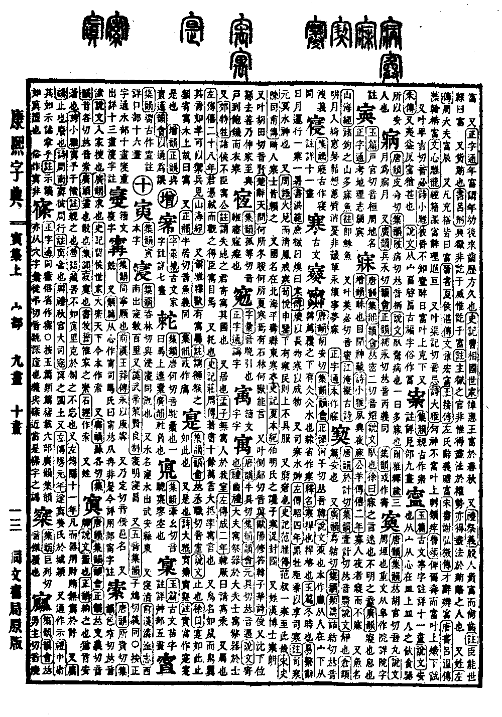 《唐韵》《集韵》《韵会》𠀤密二切,音媢。《说文》卧也。《徐曰》寐之言迷也,不明之意。《广韵》寝也,息也。《增韵》眛也,目闭神藏。《诗·小雅》夙兴夜寐。《公羊传·僖二年》寡人夜者寝而不寐。 又鱼名。《山海经》诸钩之山,多寐鱼。《注》即䱅鱼。 又叶美必切,音蜜。《江淹·拟古诗》明月入绮窻,髣髴想蕙质。消忧非蘐草,永怀宁梦寐。 《正字通》本作寐。